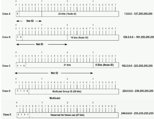 Class C addresses range from 192 to 223: binary 11000000–11011111