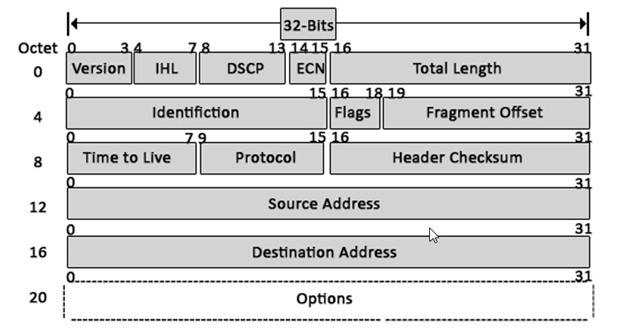 - Options is a field whose size vary from 0 bytes to 40 bytes.