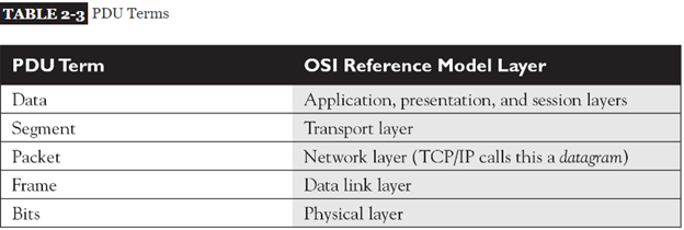 - Generically speaking, the term protocol data unit (PDU) is used to describe data and its overhead.