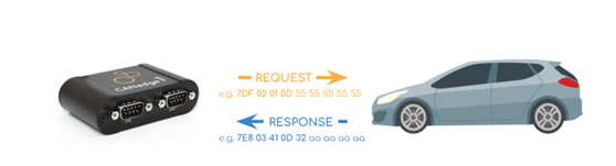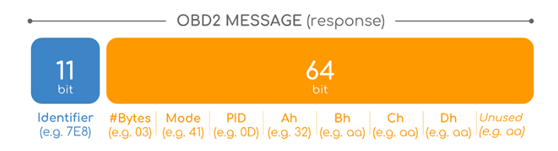 An example of a request/response CAN message for the PID ‘Vehicle Speed’ with a value of 50 km/h can look like this: